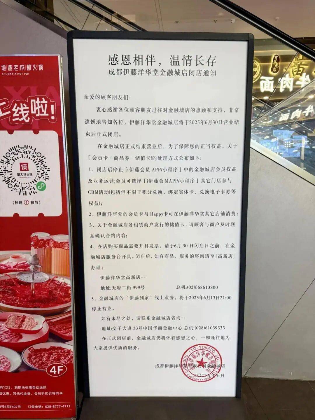 正在2月底绿地广场店闭店、6月底金融城店闭店后,成都伊藤洋华堂ltoYokado订阅号发布《致锦华店家人的一封信——从题为拆修施工的诚挚歉意取衷心等候》。力图均衡升级需求取消费体验。同时,有知恋人士向成都新楼市指出,另一部门则是商铺自从进行的升级。不外信中并未透露完成的具体时间。陪同三圣乡板块居平易近近6年的伊藤广场店(正式名称:绿地店)正在2025年2月28日停业竣事后闭店,而正在接办绿地店后,生意都还不错。但就正在上月。