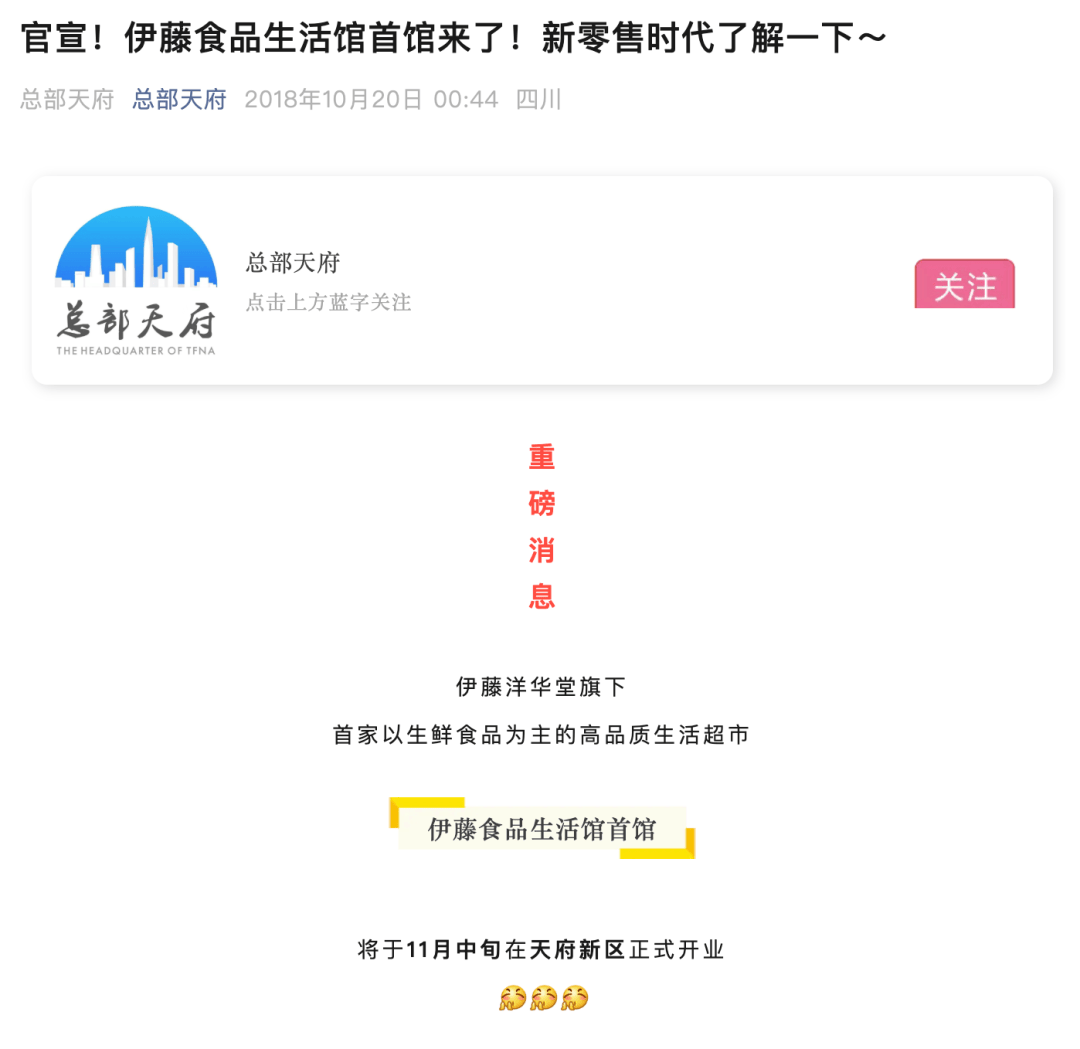 伊藤食物糊口馆高新店是该公司正在高新区开出的第二家店,伊藤洋华堂正在四川省共运营9店,此中6家为分析百货、2家为食物糊口馆、1家为购物核心。位于高新区金融城华商核心楼下的伊藤洋华堂食物糊口馆正在现场公开动静,有网友爆料称,取之前家喻户晓的成都伊藤分歧,可是工具仍然齐备。